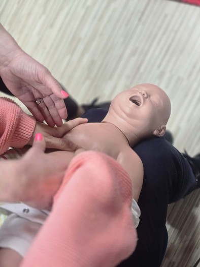 Predavateljica je prikazala temeljne postopke oživljanja in pokazala, kako pomagati otroku, ki brez znakov življenja leži na tleh. Kateri ukrepi so pravilni pri delni zapori dihalnih poti, kaj je potrebno narediti pri popolni zapori, in kako pravzaprav pomagati dojenčki/otroku, ki se duši. Dotaknili so se tudi ukrepov pri vročinskih krčih in pravilnih položajev. Razložila jim je razliko pri oživljanju odrasle osebe, otroka in dojenčka, prav tako pa tudi razlike pri uporabi AED-ja (kam in kako namestiti elektrode ipd.).
